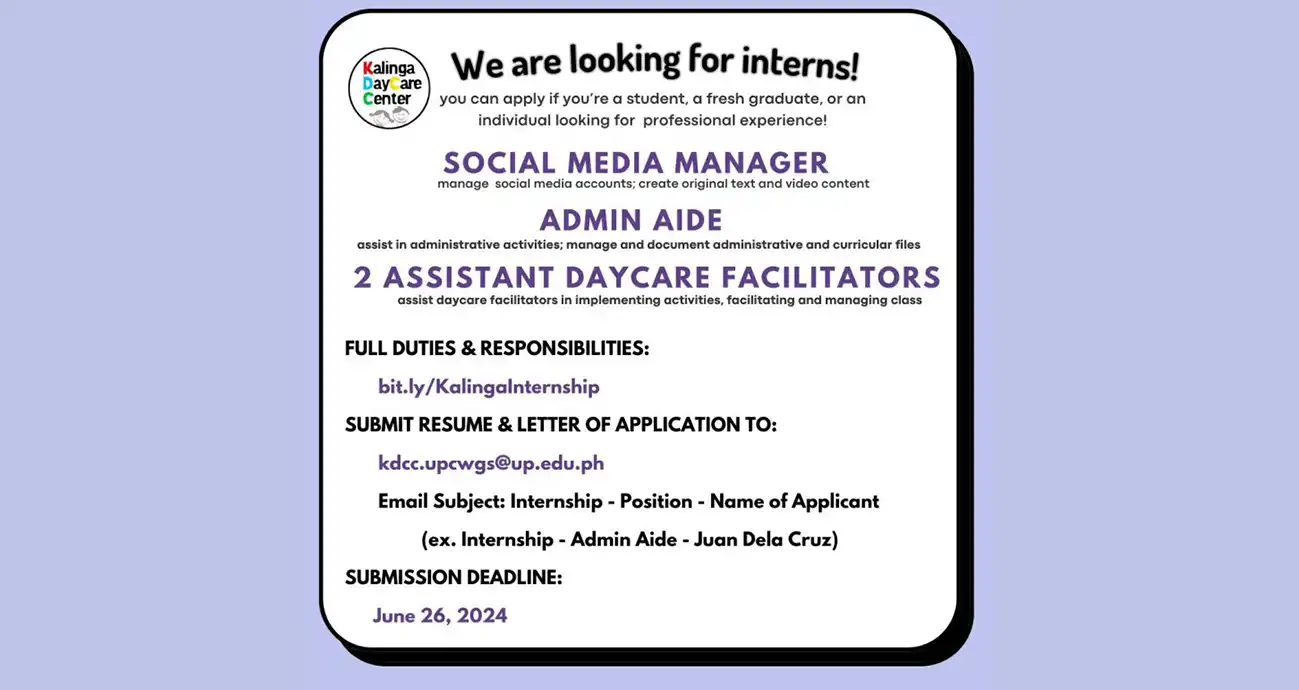 The Kalinga Day Care Center (KDCC) is looking for interns!